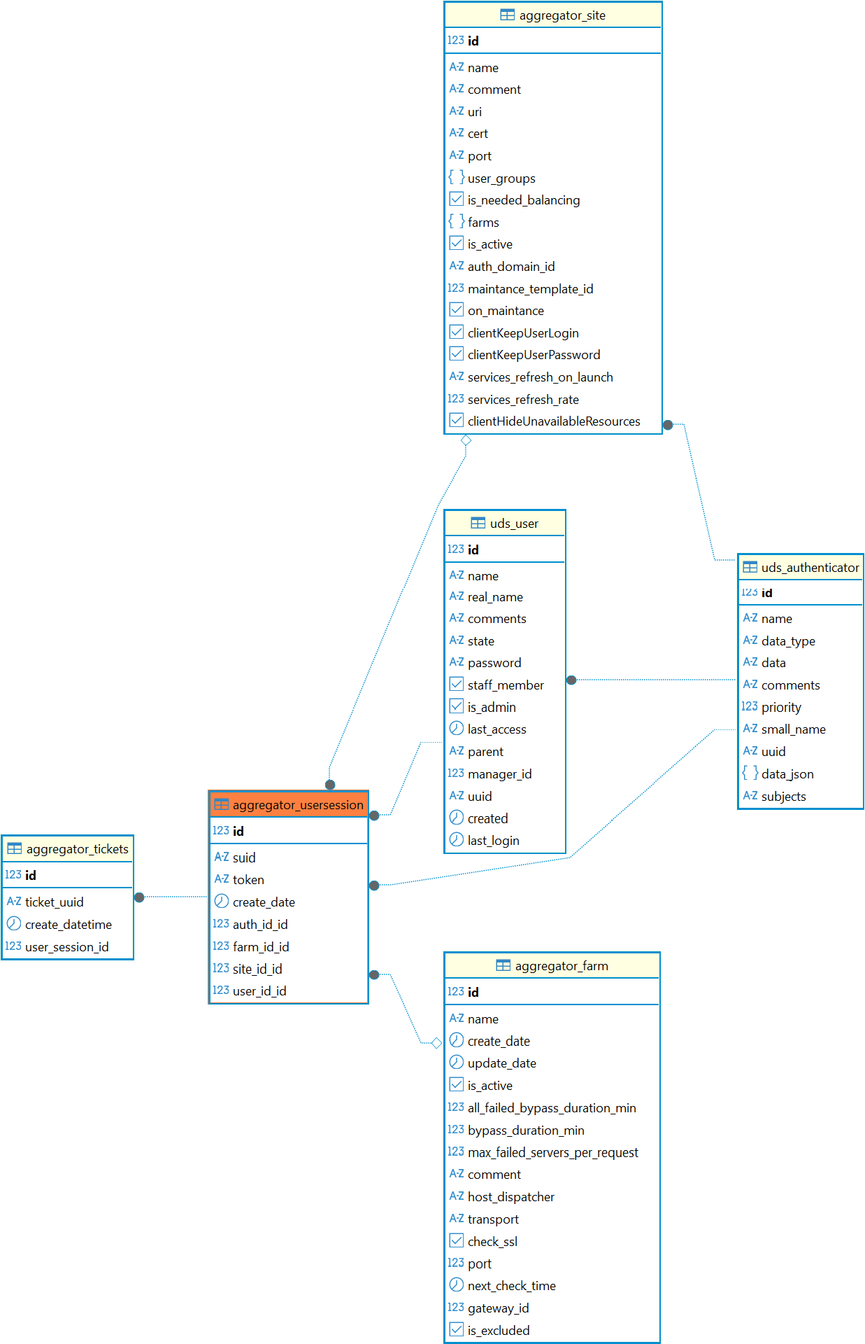 Диаграмма таблицы aggregator_usersession