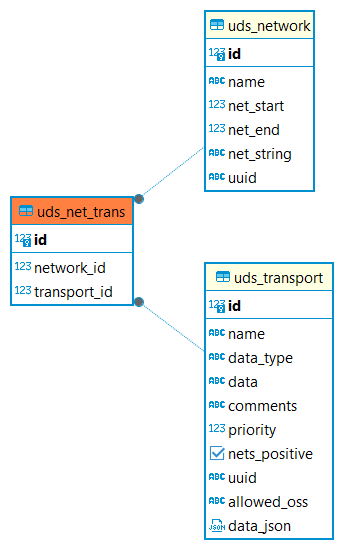 Назначение таблицы: хранение данных о связи сети и протокола доставки.