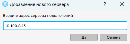 - в открывшемся окне «Добавление нового сервера» ввести IP-адрес Универсального диспетчера и нажать экранную кнопку [Да];
