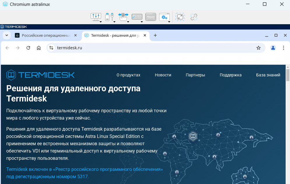 - в новом окне ПО Termidesk Viewer, если настроен запуск приложения через исполняемый файл.