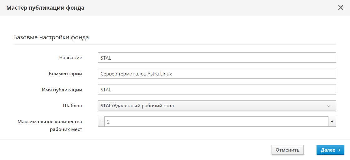 При этом откроется окно «Мастер публикации фонда». В полях формы «Базовые настройки фонда» следует ввести соответствующие данные и нажать экранную кнопку [Далее].