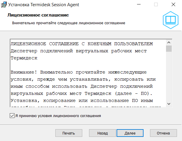 termidesk-session-agent_XXX.msi; - в окне приветствия нажать кнопку [Далее];