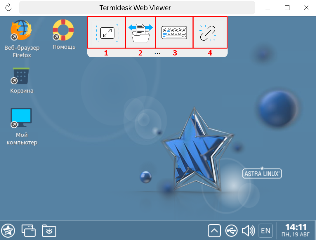 При подключении к РМ через веб-браузер по протоколу HTML5 в дополнительном окне веб-браузера отобразится веб-клиент.