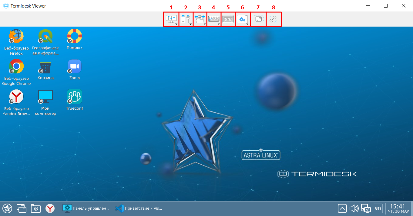 Интерфейс ПО Termidesk Viewer в оконном режиме