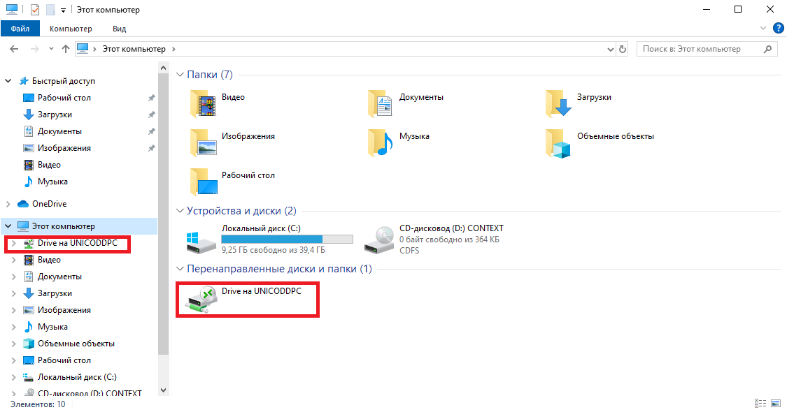 При переходе «Этот компьютер - Перенаправленные диски и папки» каталог может не отобразится сразу, поэтому следует открывать перенаправленный каталог через меню навигации проводника Windows.