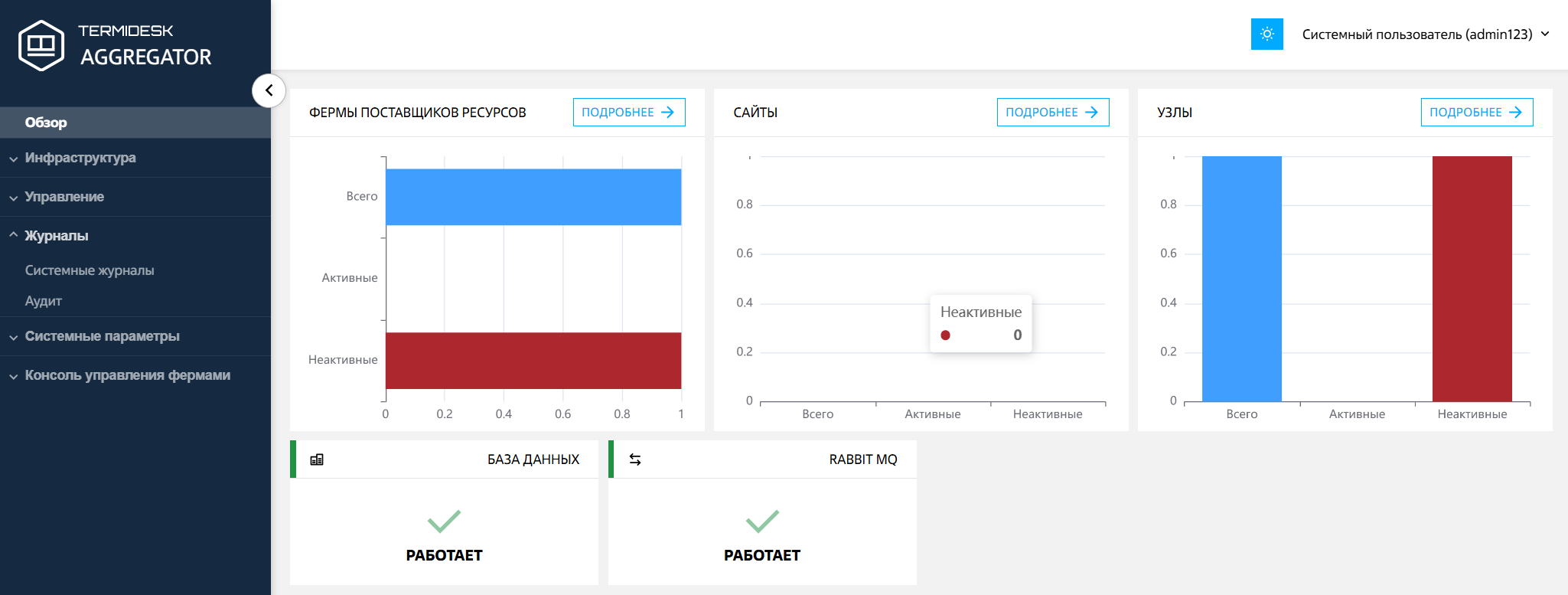 - «Узлы» - суммарное число и состояние узлов ферм поставщиков ресурсов, добавленных на «Агрегатор»;