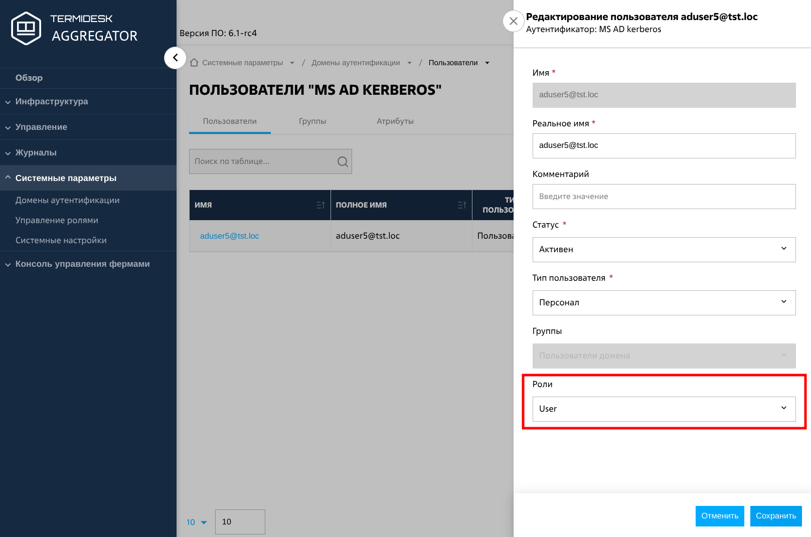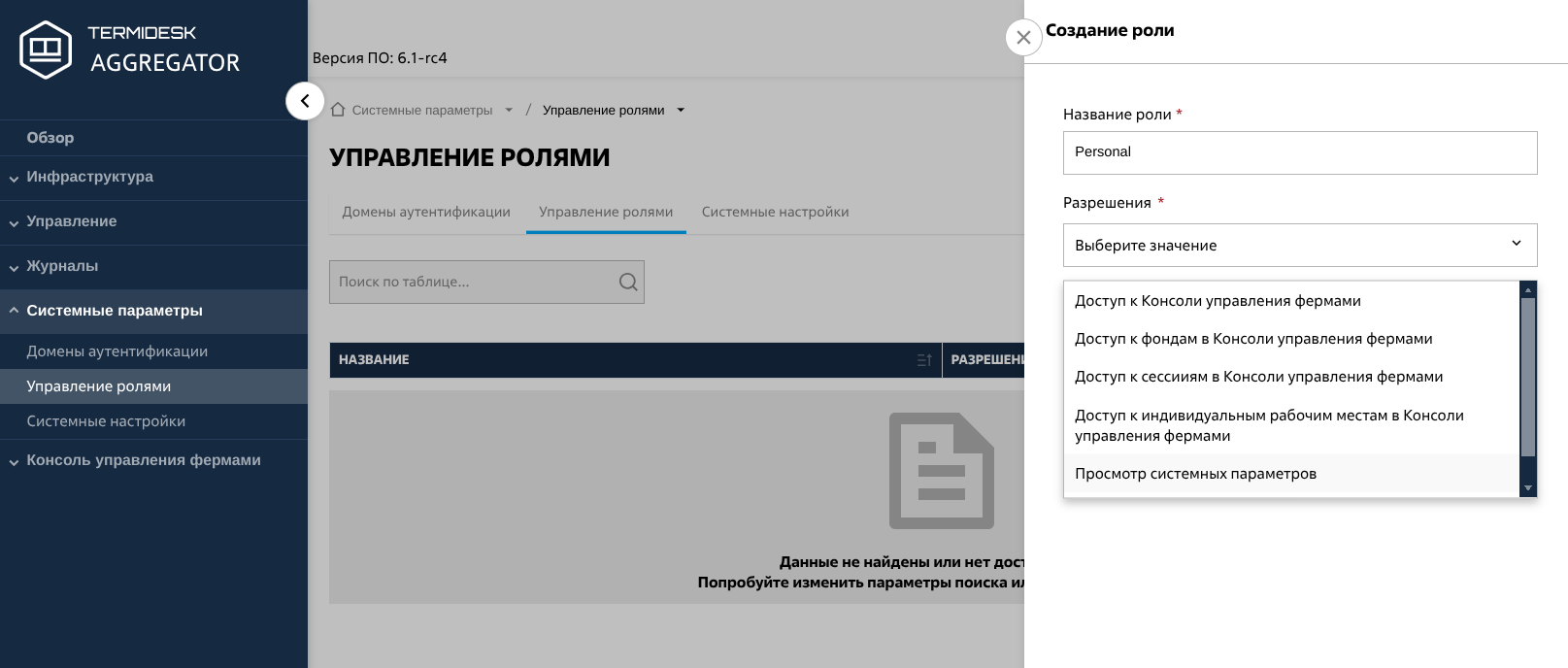 Служебные функции пользователей «Агрегатора» и фермы Termidesk должны быть одинаковыми для корректного получения данных в «Агрегаторе».