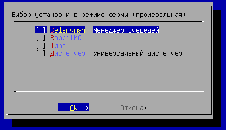 - в окне «Выбор установки в режиме фермы (произвольная)» следует выбрать компонент, который будет установлен на узел.